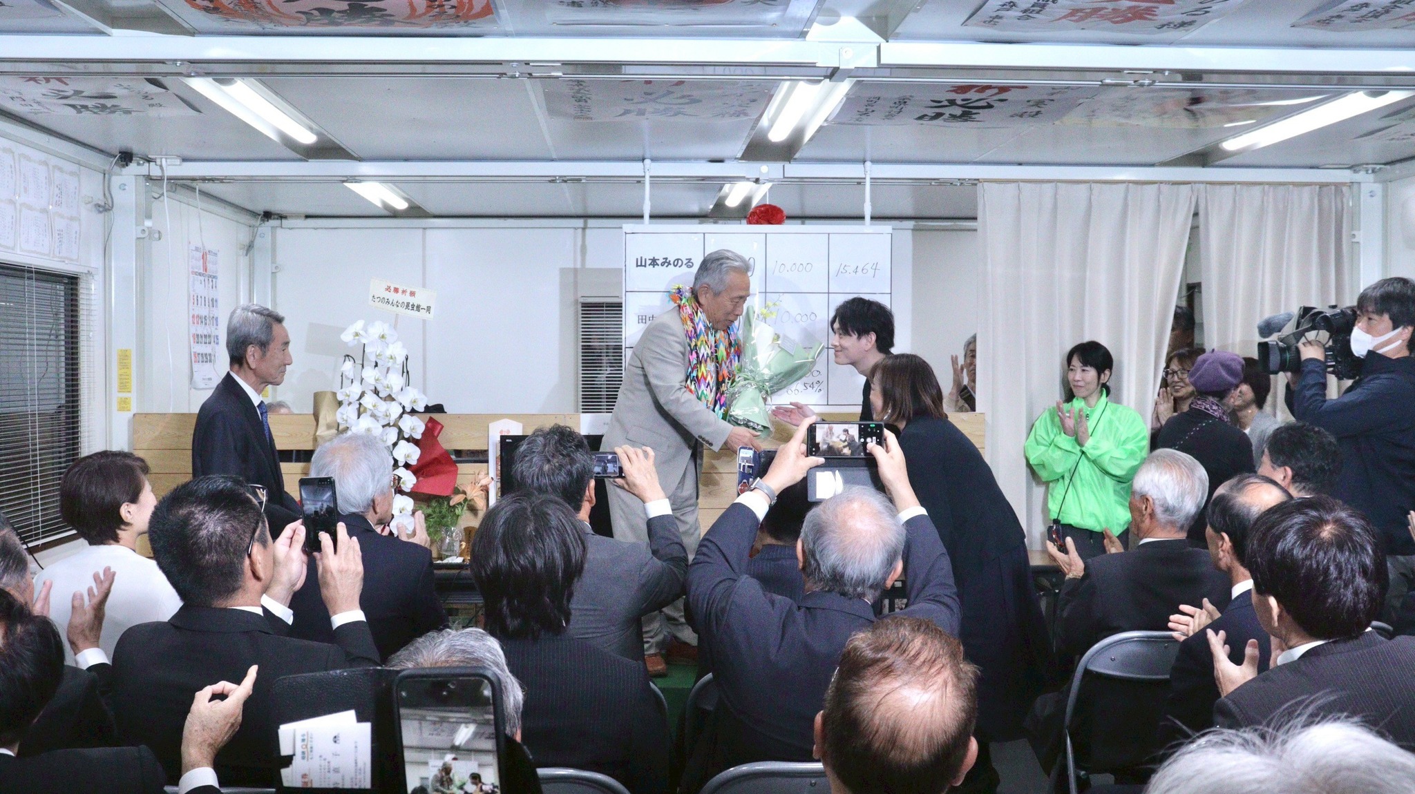 引き続き市政を担わさせていただくこととなり改めて身の引き締まる思いを感じております。選挙戦を通じて、2期8年間の実績、市政の継続、たつの市の未来、私の決意などを訴えさせていただきました。市民の皆様の負託を重く受け止め、今後も市政の歩みを進めて参ります。